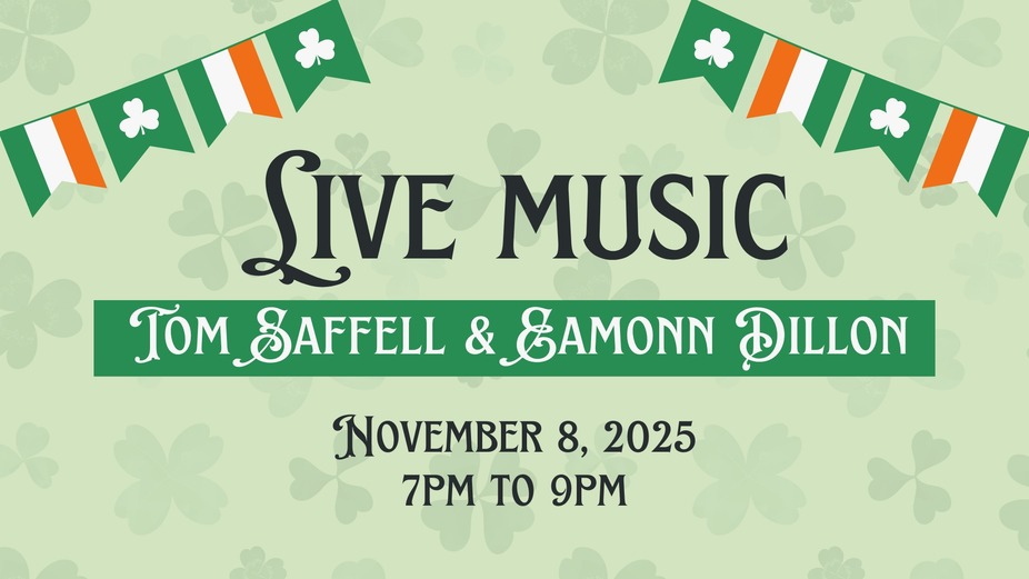 Tom & Robert will be playing live Celtic music upstairs on Feb 20th from 7pm-9pm! Come grab a Guinness, a Reuben, enjoy live Celtic music — and make it a proper Irish night!